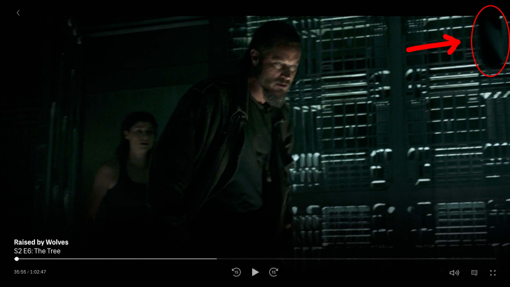 I wanted to raise to someone’s attention that there’s a clear boom mic showing in “The Tree”: Season 2, Episode 6 of Raised by Wolves. Image attached, with timestamp.