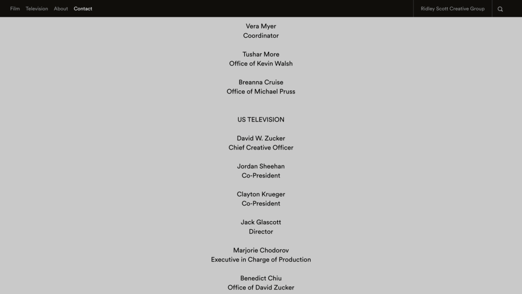 It’s a Spartan affair—names and job titles only. It’s ironic, really, that they chose to put this information on their contact page, when there are no actual contact details provided for anyone.