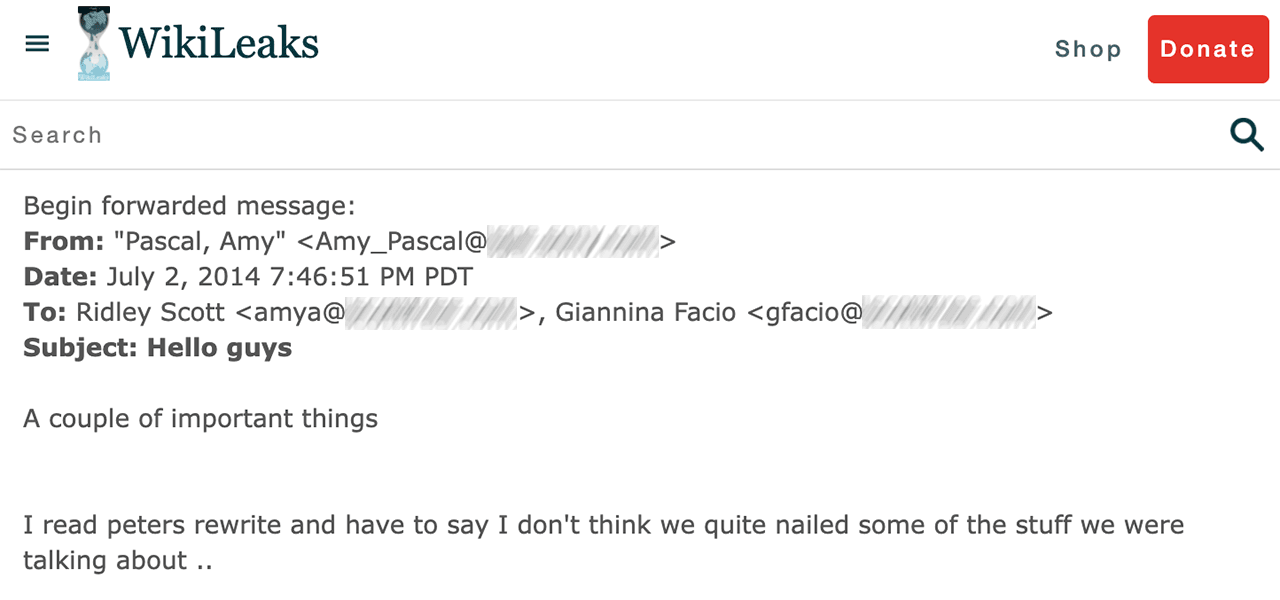 There was a big Sony Pictures hack in 2014. A lot of emails were stolen. Not-so-fun fact: I was one of the victims. All of my personal information is out there thanks to this hack (please don’t steal my identity). On the plus side, I scored a few Scott Free email addresses.